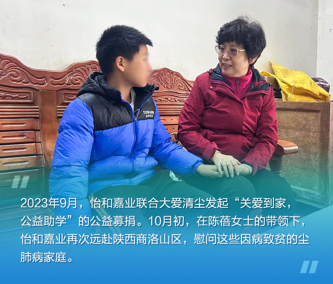 这并不是怡和嘉业第一次实地探访行动。近年来,怡和嘉业携手大爱清尘公益组织,多次探访接受大爱清尘捐赠的患者家庭,实地了解他们的家庭困难及用机问题。