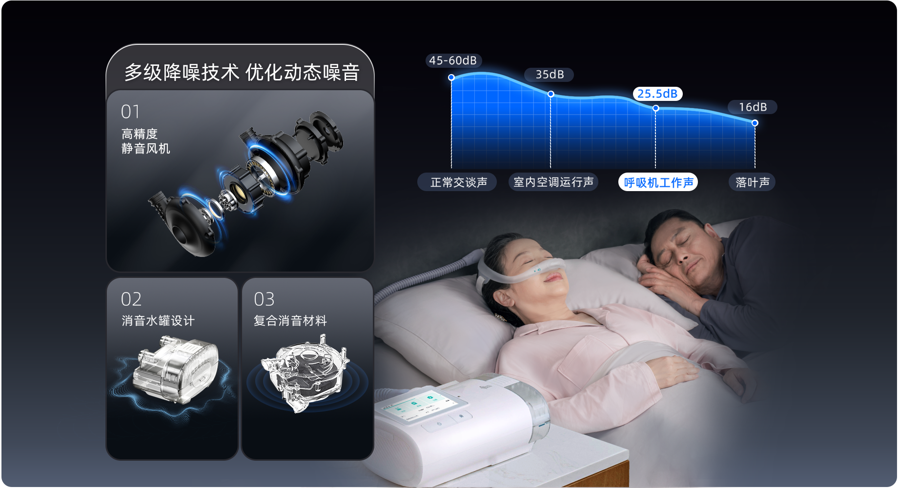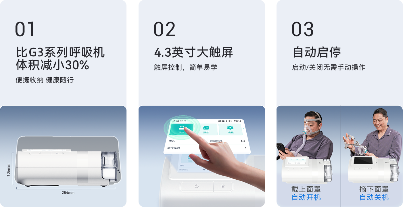 多重升级,优化呼吸机的动态噪音真正做到从吸气到呼气都静谧自然